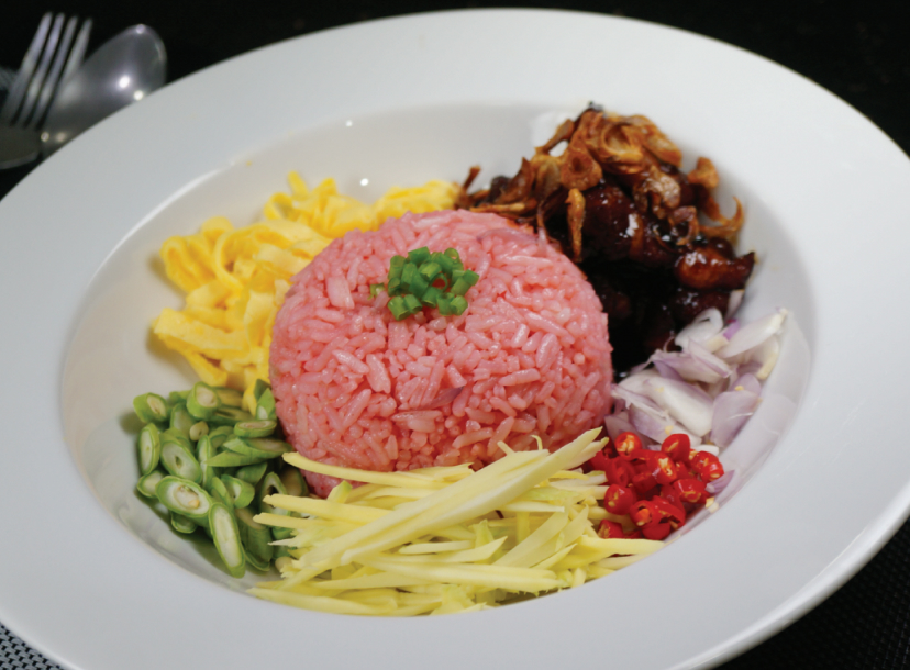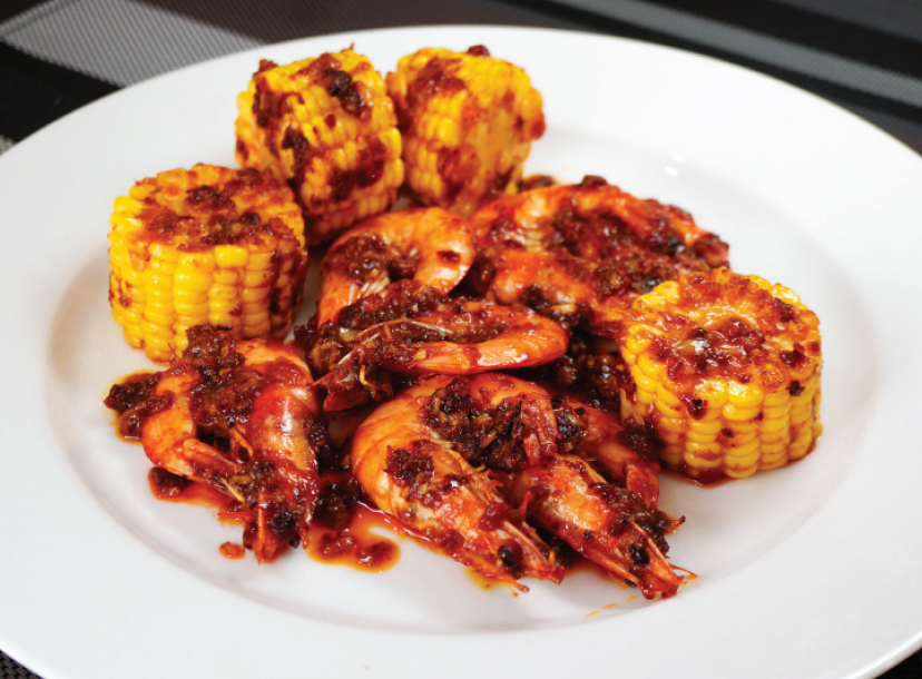 - Invert a plate into the pan and flip it over so the wrapped egg is on the plate. Drizzle with Chilli Sauce Mabin Brand. Garnish with fresh shrimp and shredded kaffir lime leaves.