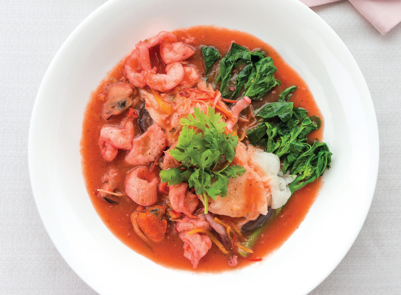 - ปรุงรสชาติด้วยน้ำพริกเผา นมข้นจืด น้ำปลา น้ำตาลทรายและน้ำมะนาว ชิมรสตามชอบ